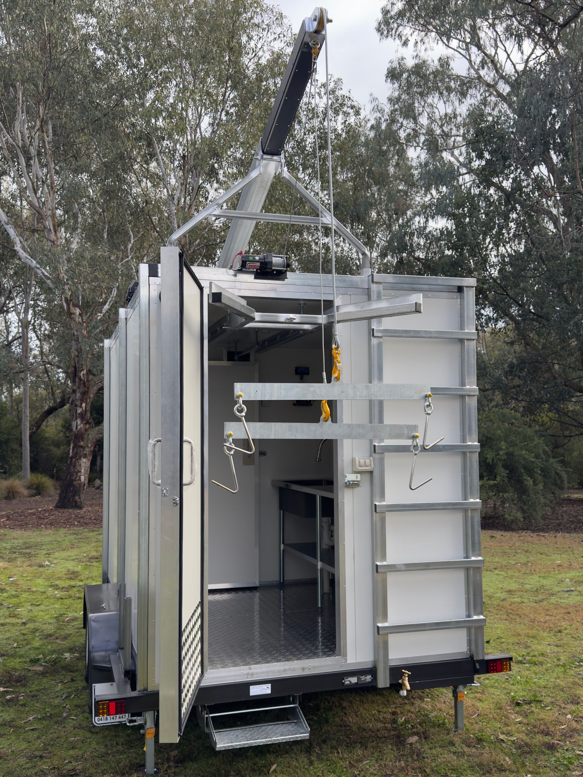 Austwide Portable Coolrooms with provide an innovative solution to meat rail designs to meet the specific needs of mobile butchers. These coolrooms are equipped with high-quality meat rail systems, providing a secure and organised method for hanging and transporting meat cuts efficiently.